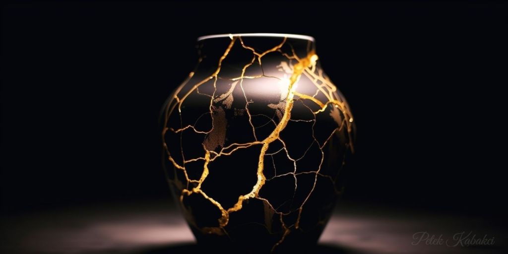 You see this picture? It’s kintsugi pottery. The art of repairing broken pottery by mending the area of breakage with lacquer mixed with gold. The philosophy behind it is to treat breakage and repair as part of its history, instead of something to disguise.