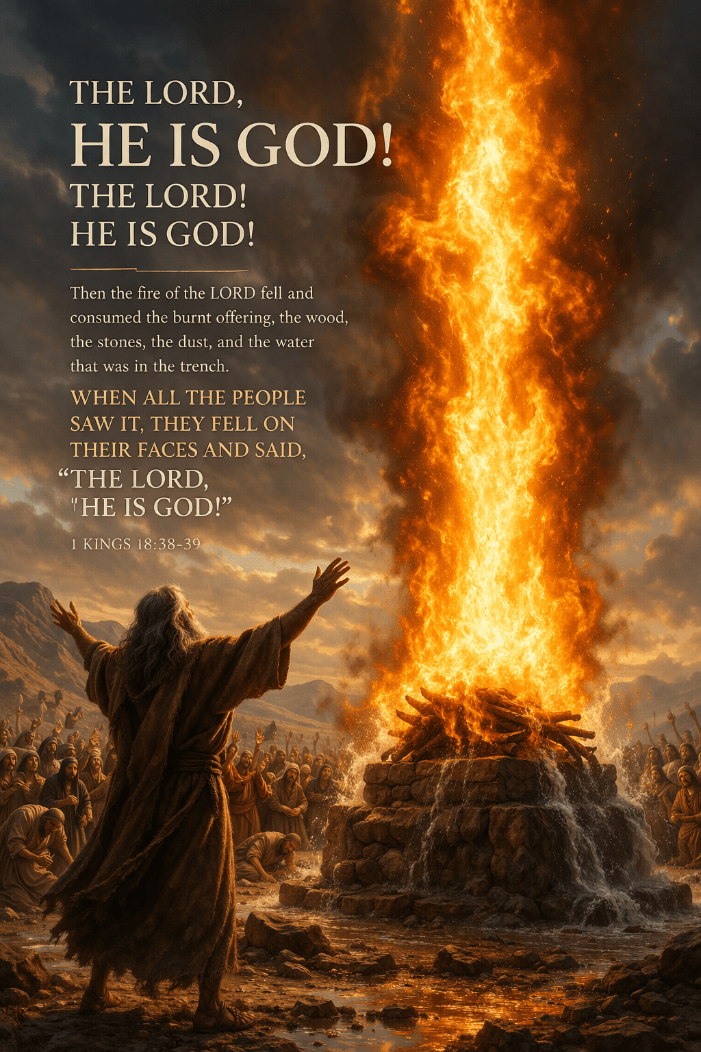 The people fell to the ground shouting, “The Lord, He is God! The Lord! He is God!”